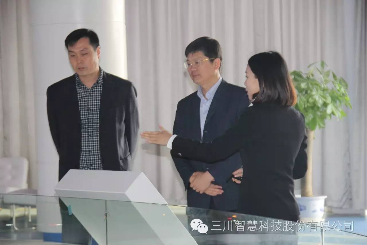 鹰潭市高新区管委会主任杨鹏(中)参观星空官方网站_星空xingkong(中国)智慧展厅